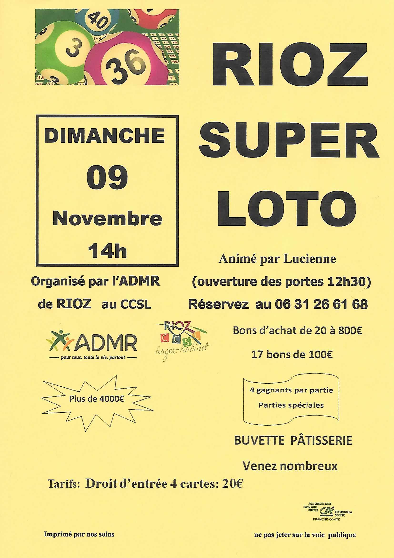 Dimanche 9 novembre, super loto au CCSL de Rioz dès 14h.