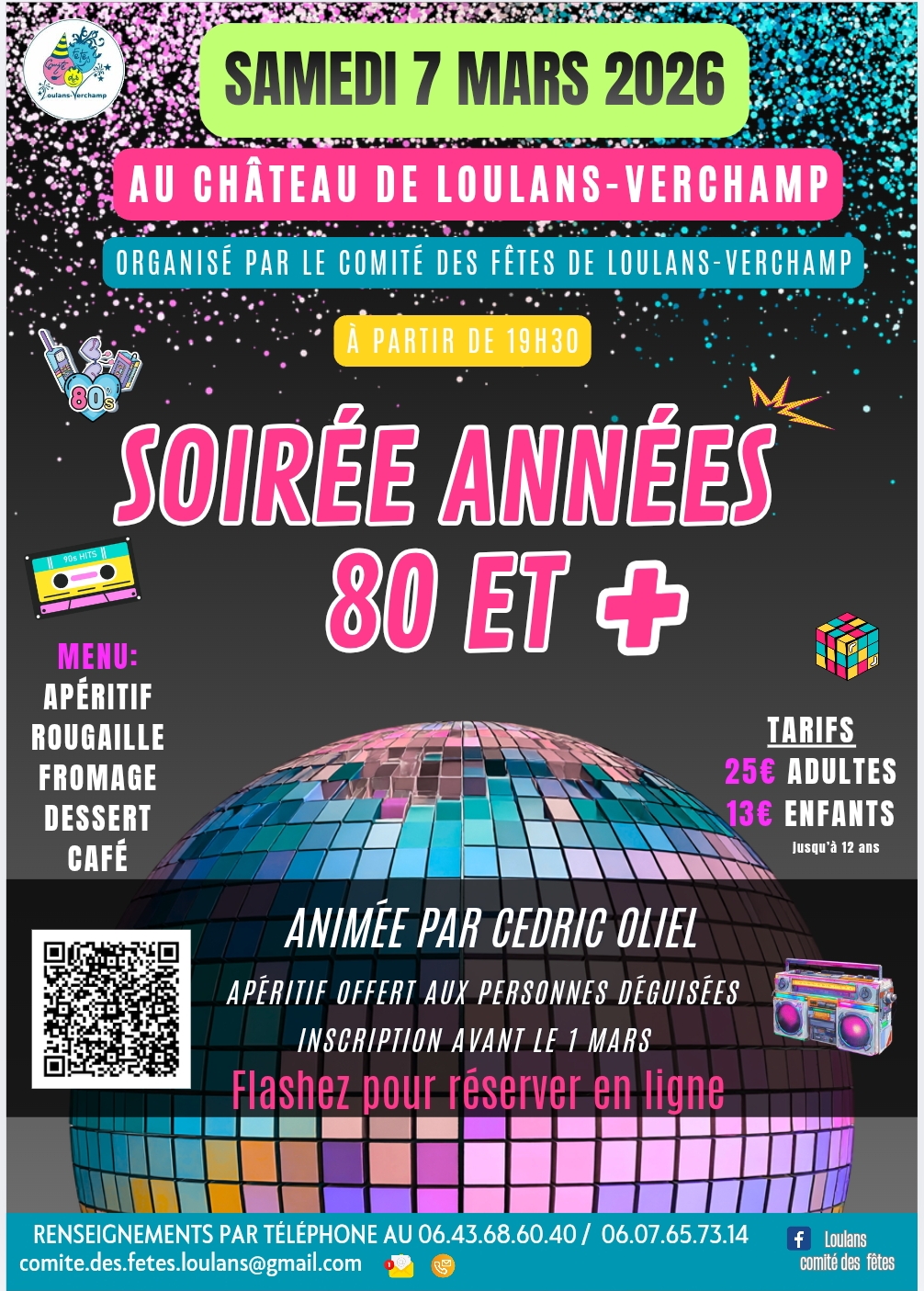 Soirée années 80 et + au château de Loulans-Verchamp le samedi 7 mars à partir de 19h30, inscription avant le 22 février