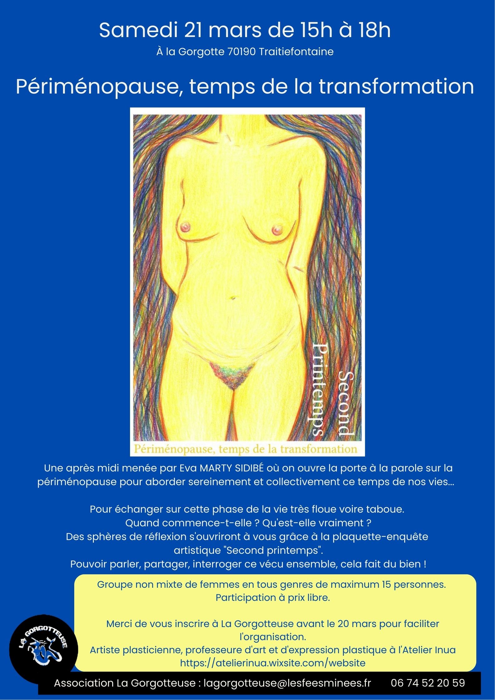 Samedi 21 mars à la Gorgotte à Traitiéfontaine, après-midi de sur la "périménopause, temps de la transformation" de 15h à 18h.