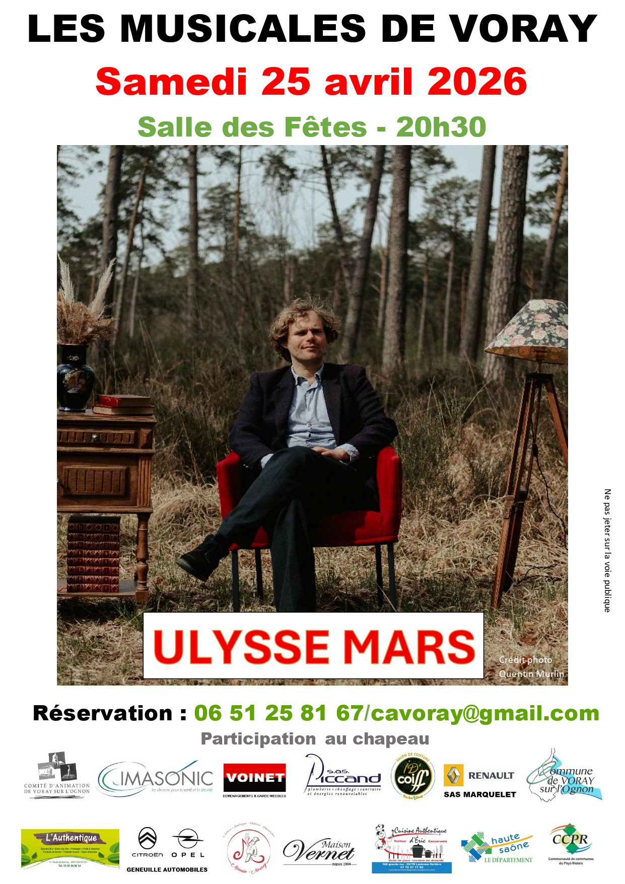 Concert d'Ulysse Mars à Voray sur l'Ognon le samedi 25 avril à 20h30.