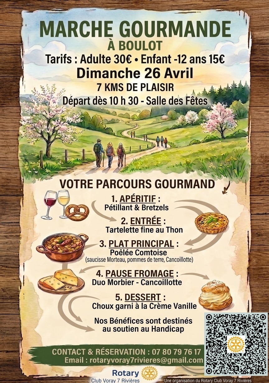 Dimanche 26 avril, marche gourmande à Boulot, organisée par le Rotary Club Voray 7 Rivières.