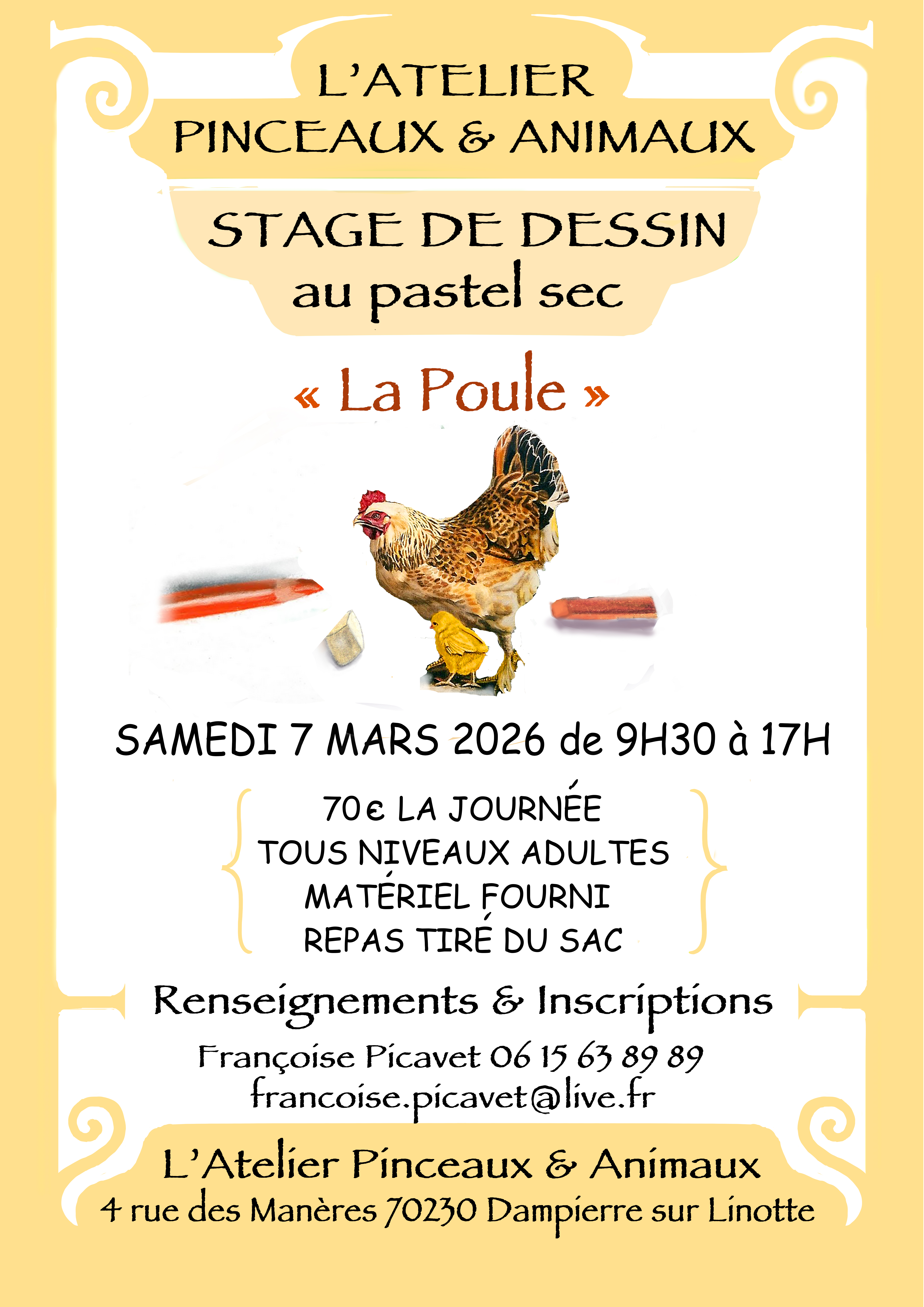 stage de dessin au pastel sec, samedi 7 mars de 9h30 à 17h. inscriptions, 06 15 63 89 89 ou francoise.picavet@live.fr
